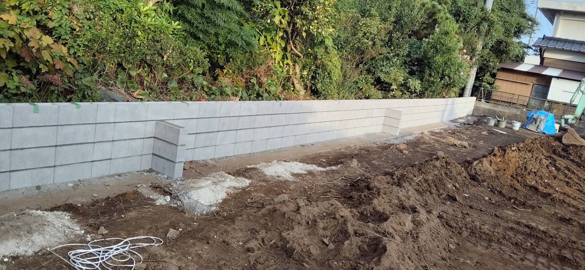 台風が太平洋を北上しているので雨が有るかな?って思ってたら全部積み終わって裏側の埋め戻しも終わったとの事なので残っているのは天端モルタルだけです