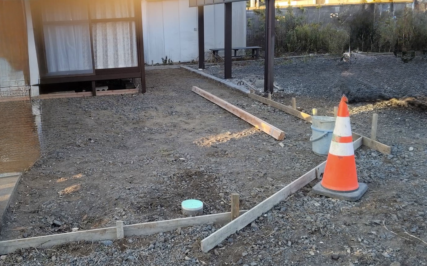 コンクリートにして草が生えてくるのを防ぎます。明日からコンクリート打設になります。