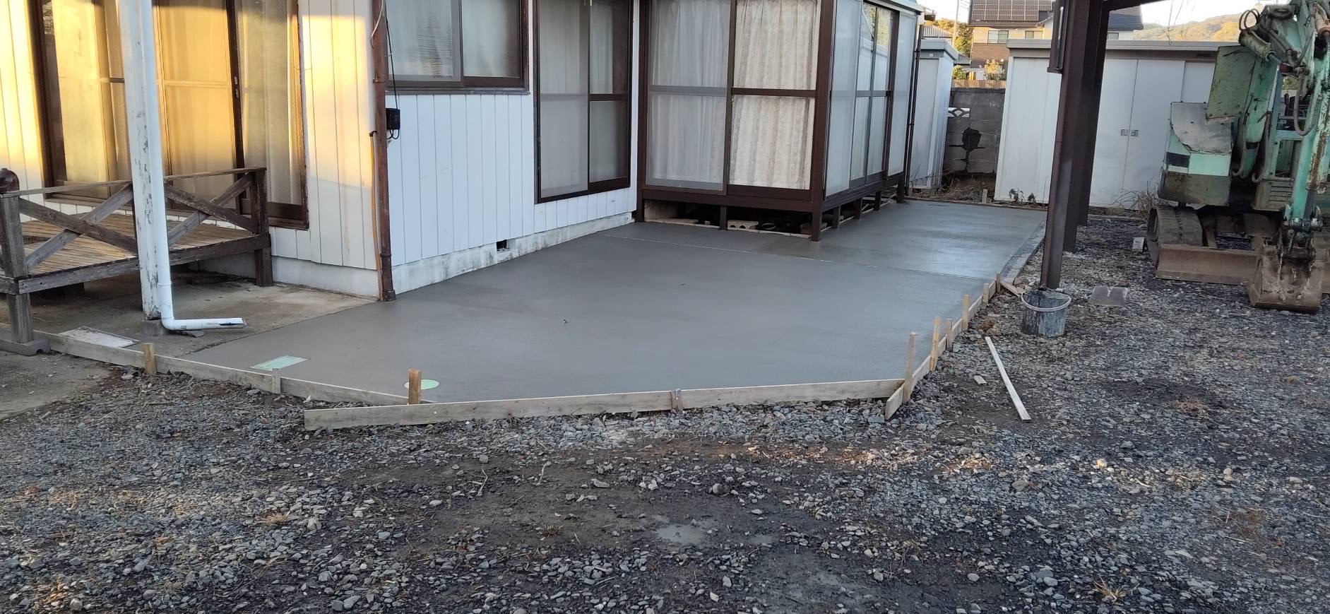 防草コンクリートも昨日の雨にもかかわらず養生が効いたので被害無しです。