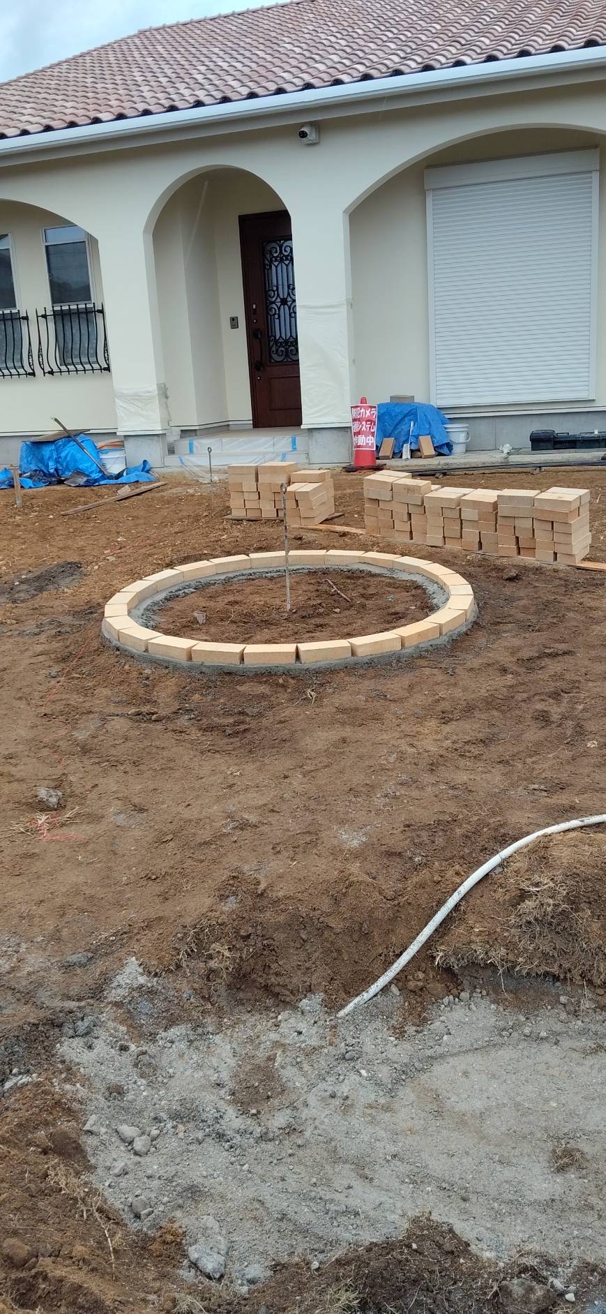 4段積みを予定してます。アプローチはブロック塀が出来ないとブロックにぶつかってくるので未だ出来ません!