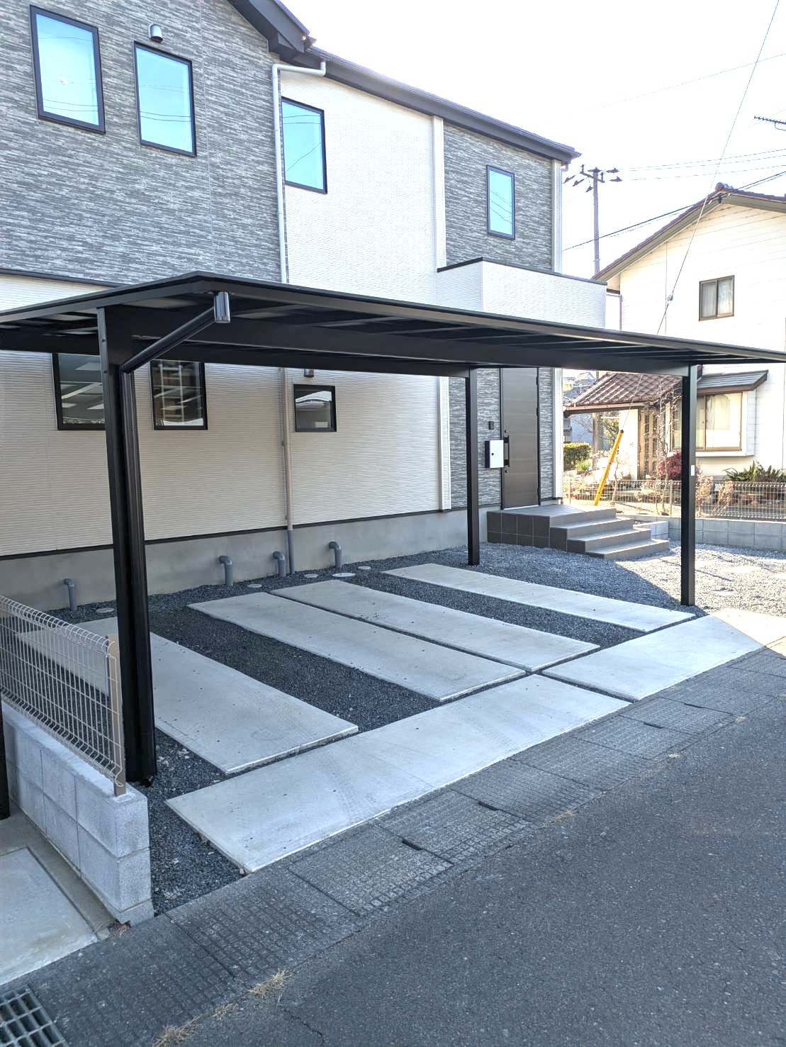 社長はカーポートの屋根材を張りに行って昨年から残しておいたカーポートを完成させて来ました♪