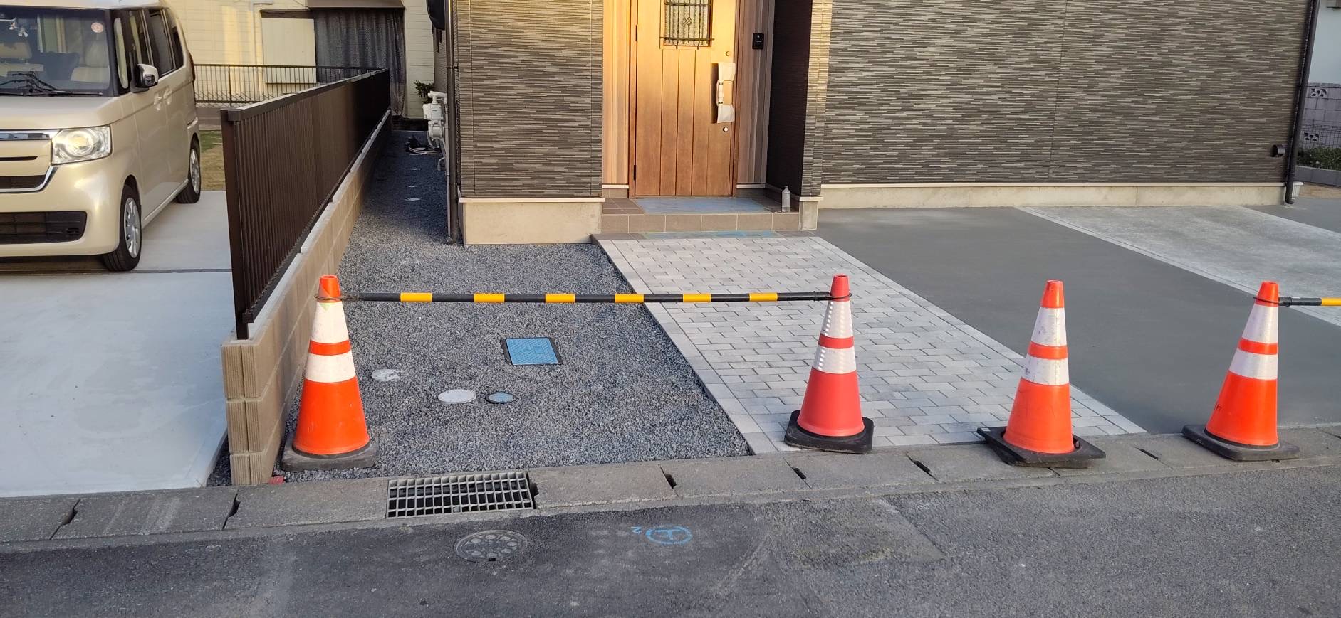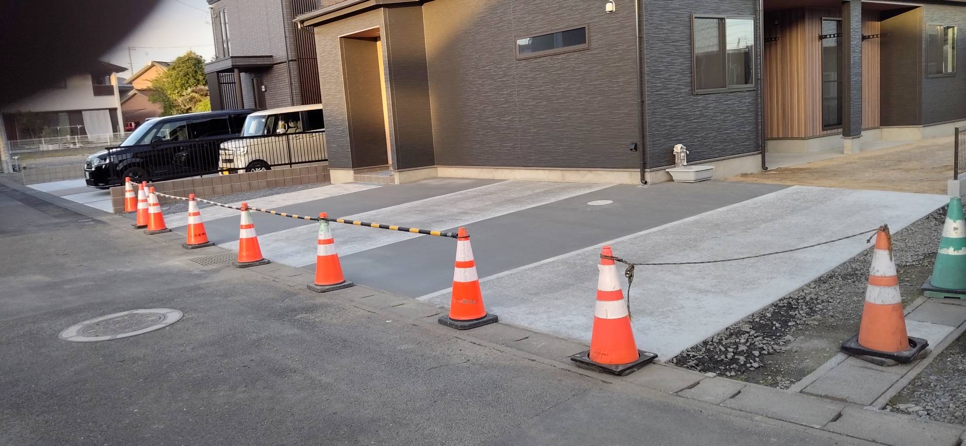 朝のミーティングでブロックのベースコンクリートを打つかやめるかの相談ももどかしく決行の号令の下足元の養生材を積んですぐさま事務所を離脱しての現場行きです!
